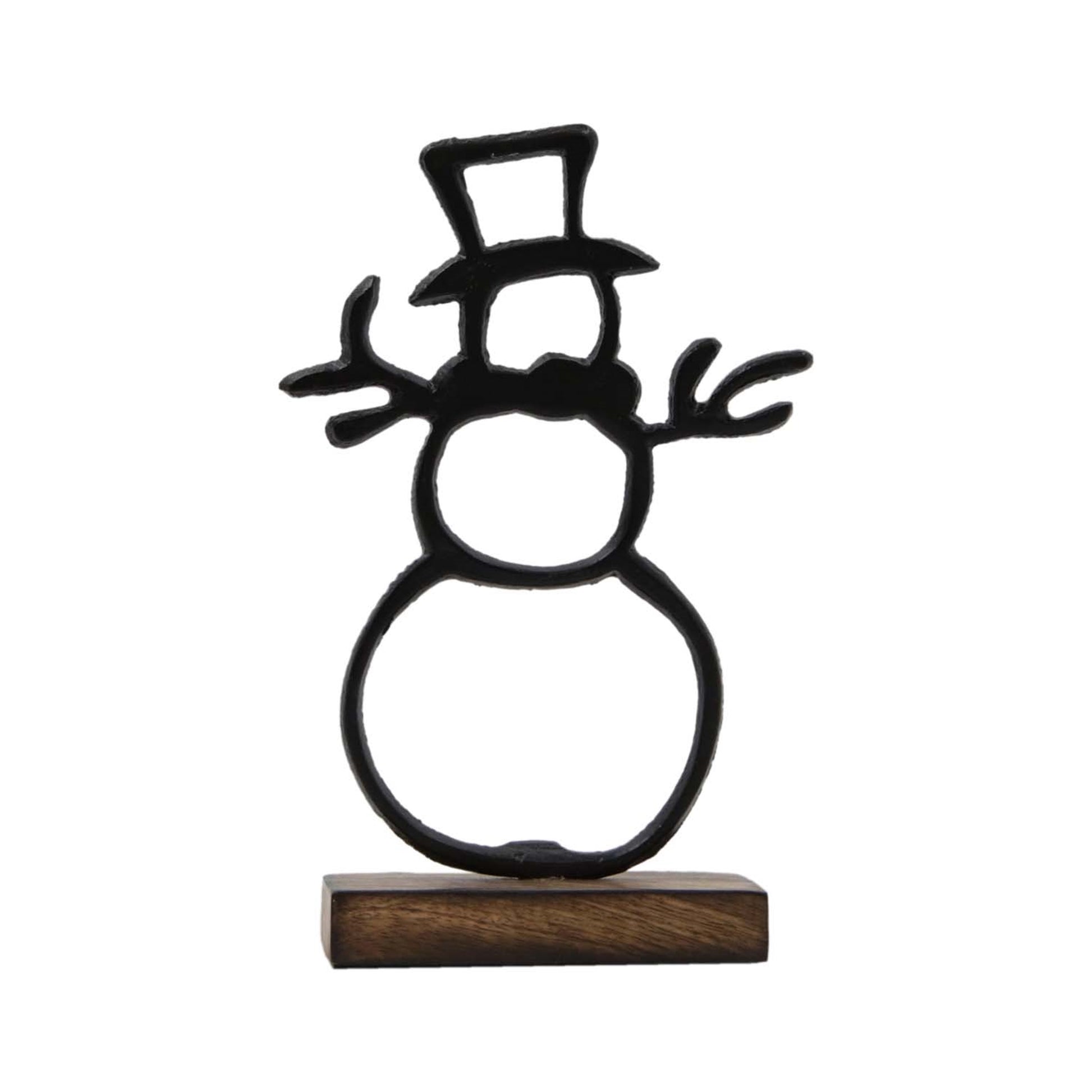BLACK METAL SNOWMAN ON STAND - ASSORTED