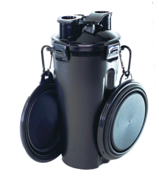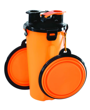 Features: 2 separate compartments inside - one for food or treats, the other for water. Includes 2 collapsible bowls attached by a carabiner.