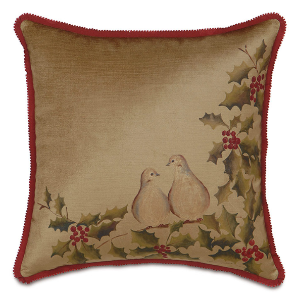 E.A. LUCERNE DOVES DECORATIVE HOLIDAY PILLOW - 20" X 20"