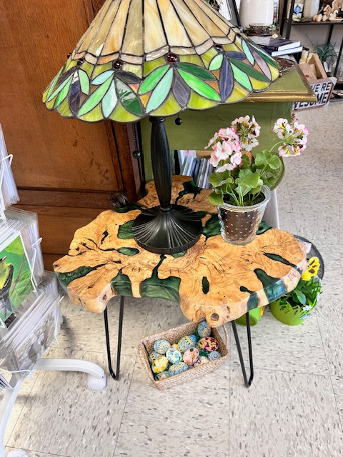 HAND-MADE WOOD AND RESIN TABLES -OLIVE WOOD END TABLE 22" x 21" x 20 1/4"T