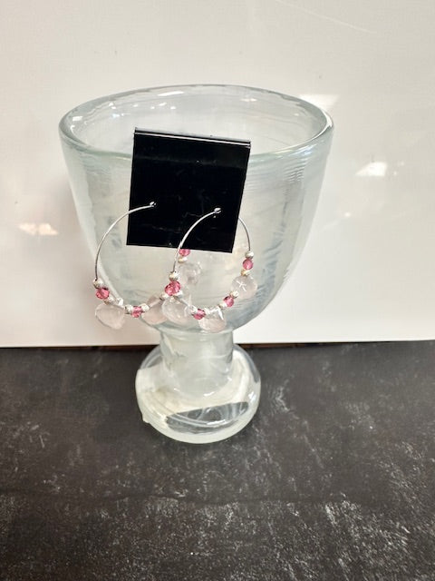 JANNIES JEWELS - EARRINGS 44 ROSE QUARTZ AND ROSE SPINEL HOOP