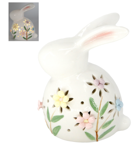 LED PORCELAIN BUNNY WITH DAISY FLOWERS