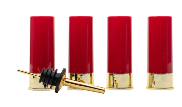 Unleash your bartending firepower with Shotgun Shooters, the must-have home bartending set designed for men who appreciate rugged style. This set features four 1.4oz shot glasses in the style of a 12 gauge shotgun shell. Complete with a sturdy serving tray, prepare to impress guests with this unique shot glass set. Simply lock, load, and pour!