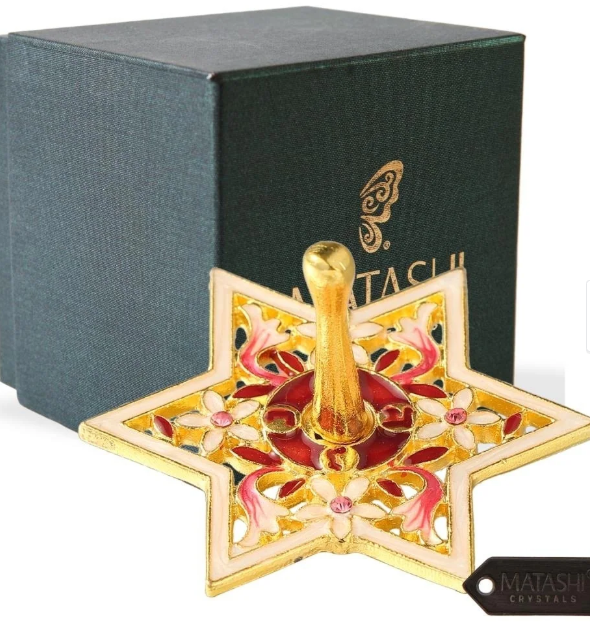 Ceremonial Jewish Art – This stunning pewter ornament embellished with high-quality Matashi crystals is crafted with pewter and hand-painted with a vintage demure style that’s beautifully classic.