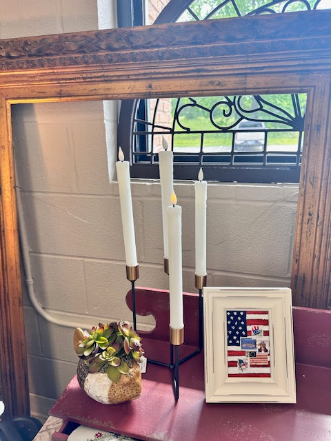 MODERN BLACK AND BRASS GOLD 4 TAPER CANDELABRA