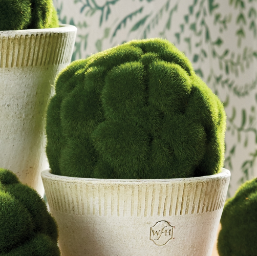 As if they were scooped from the foothills of Carolina, these mood moss orbs are expertly crafted. Scattered along a tablescape, or placed in a favorite low bowl, a fresh, clean look.