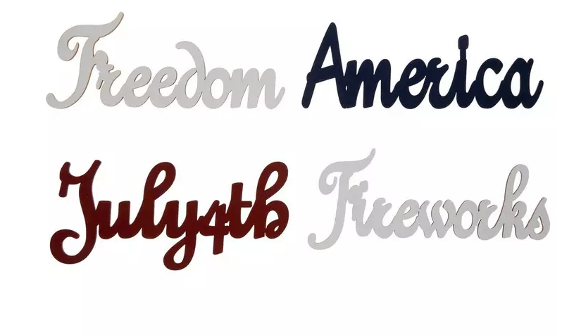 Infuse some patriotic pride into your table setup with these Patriotic Wood Cutouts. These plywood cutouts spell out "July 4th," "Fireworks," and "America" in a cursive script. They boast either a festive red, white, or blue color which will complement your patriotic table decor! Pair these with matching plate chargers, napkins, and cutlery for a celebratory arrangement.