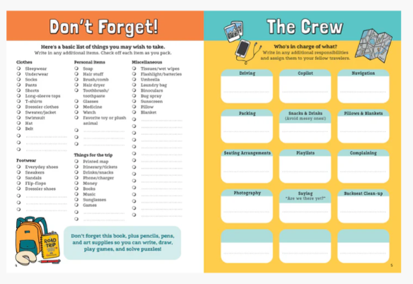 - Added log pages will help them keep track of their road trip experiences, too.