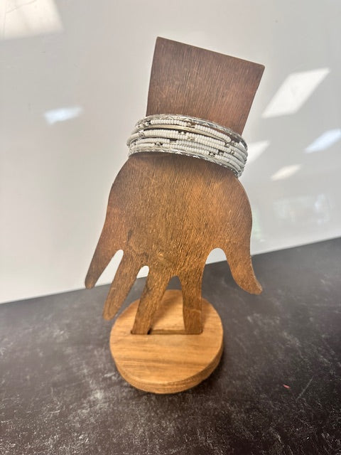 WHITE BEADED AND SILVER MULTI BANGLE BRACELET - SET OF 8